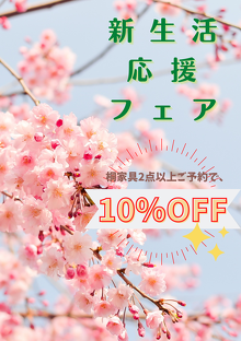 桐家具を2点以上ご予約で、合計金額より10%OFFさせて頂きます。
